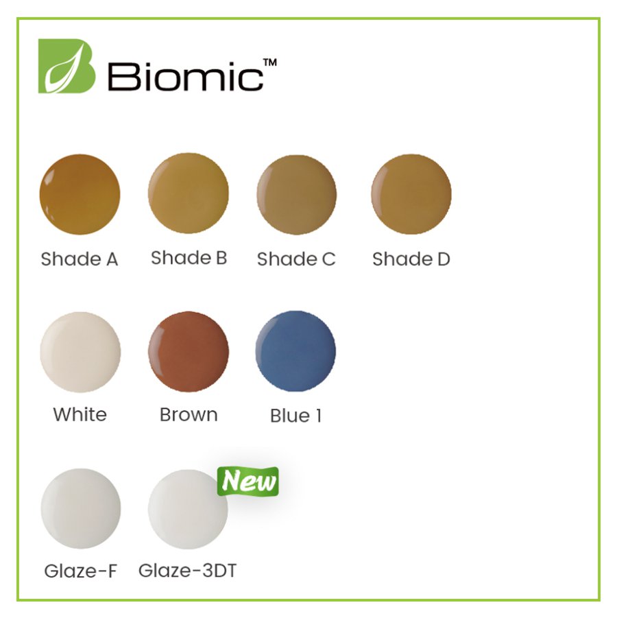 Délai de livraison de 24 heures* pour les paiements par carte bancaire ou virement instantané exclusivement.Biomic™ Stain/Glaze est une solution tout-en-un conçue pour la coloration, la caractérisation et le glaçage des restaurations dentaires en céramique (zircone, céramique vitreuse, PFM). Grâce à sa technologie biomimétique, elle permet d’obtenir un rendu esthétique naturel, proche de la dentition réelle.
