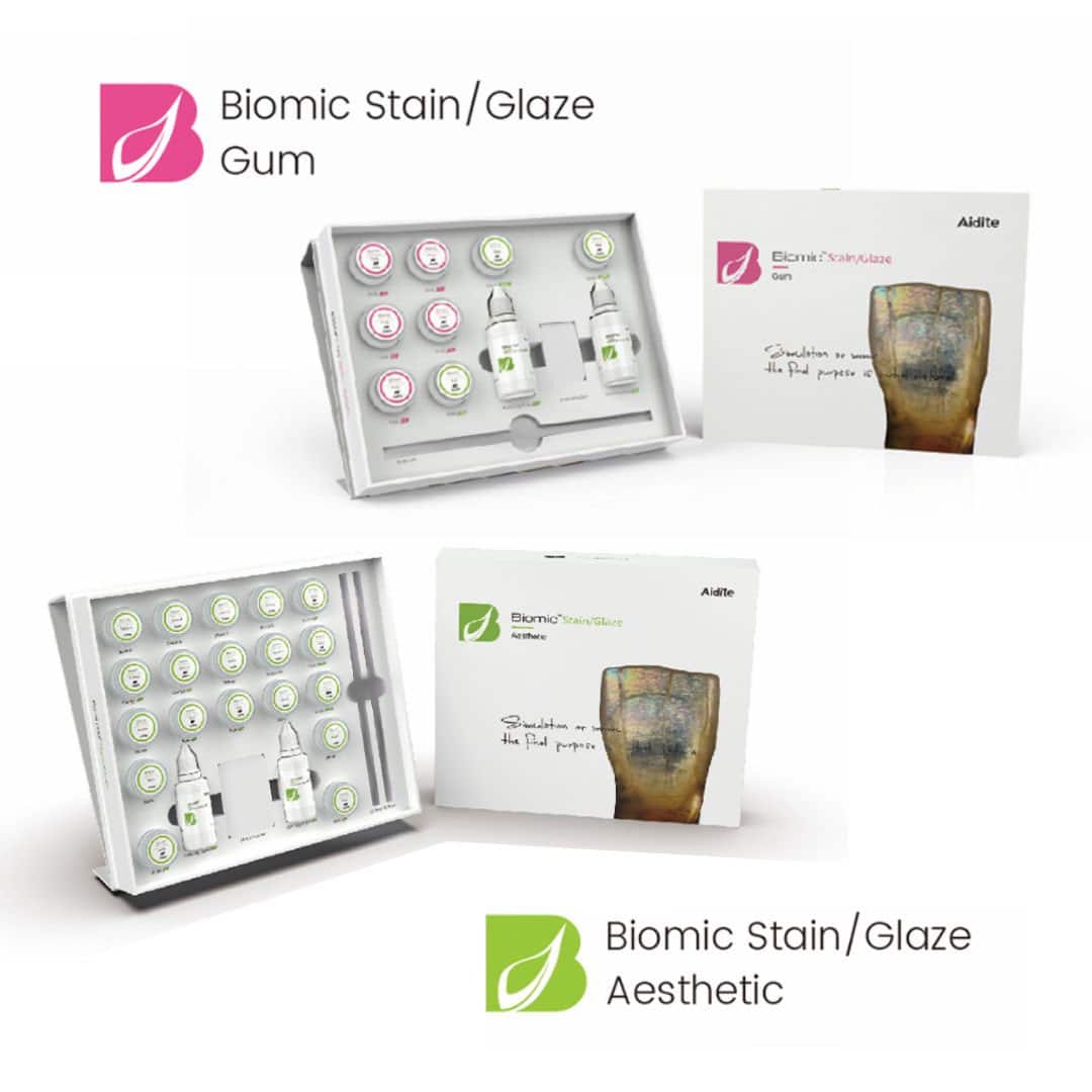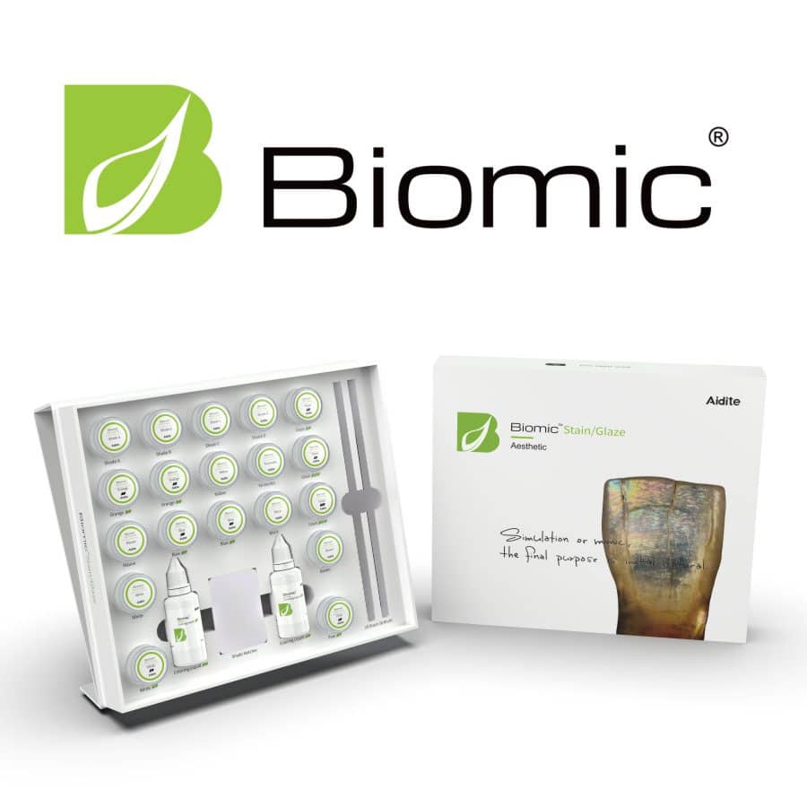 Biomic™ Stain/Glaze est une solution tout-en-un conçue pour la coloration, la caractérisation et le glaçage des restaurations dentaires en céramique (zircone, céramique vitreuse, PFM). Grâce à sa technologie biomimétique, elle permet d’obtenir un rendu esthétique naturel, proche de la dentition réelle.