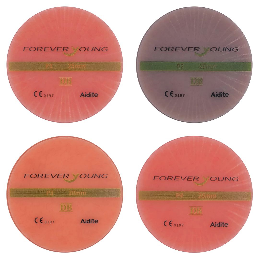 Offrez à votre laboratoire une solution de pointe pour la fabrication de prothèses dentaires avec le PMMA Denture Base Pink d’Aidite spécialement conçu pour l’usinage de base de prothèse sur systèmes CAD/CAM.