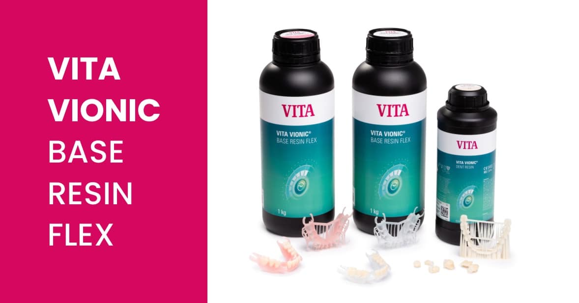 VITA VIONIC® BASE RESIN FLEX est une résine d’impression 3D pour la fabrication de bases prothétiques amovibles et flexibles pour une utilisation temporaire.